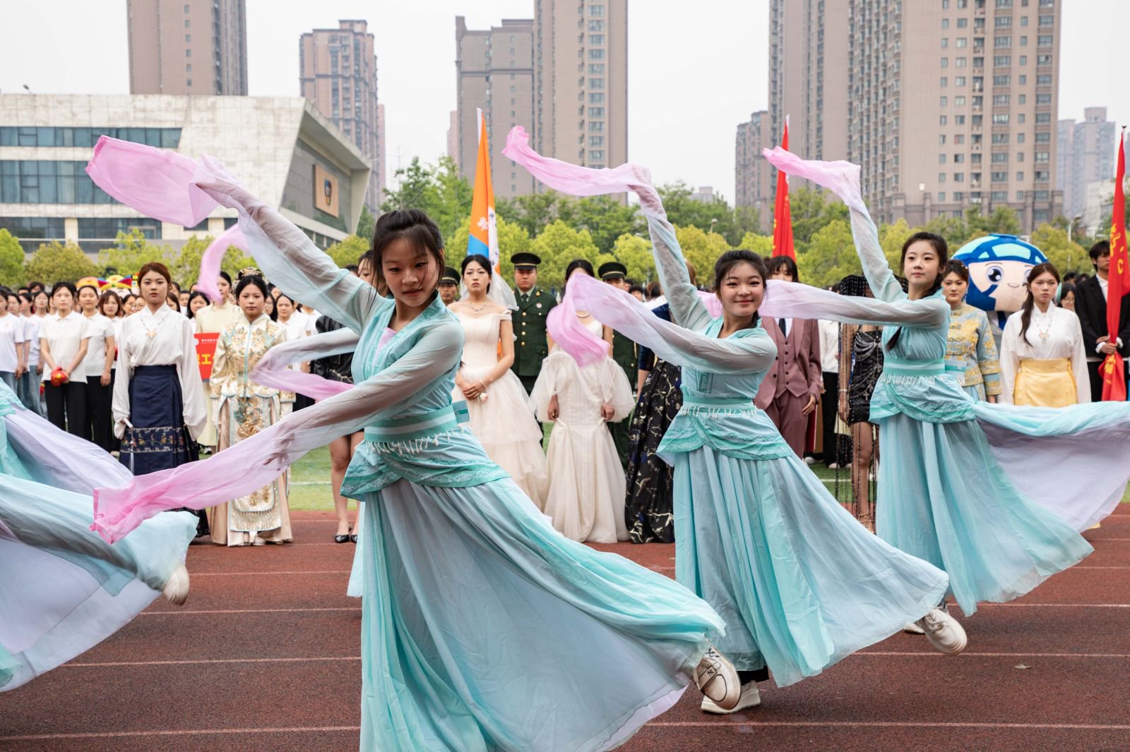 伴随着“财聚青春,筑梦领航”主题团体操精彩上演,开幕式掀起高潮。表演以“薪火相传・郑财院启航”“青春逐梦・活力飞扬”“同心向远・筑梦中华”三个篇章,生动展现学校办学底蕴、学子青春风采与家国情怀,为运动会拉开精彩帷幕。
