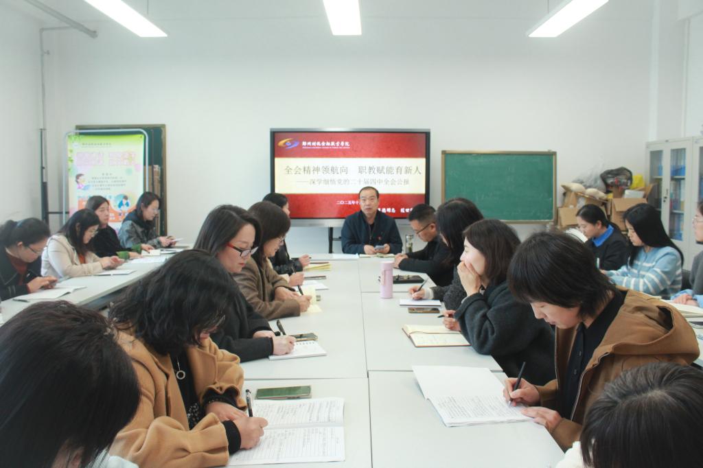 赵主任领学了全会精神,围绕“科技自立自强”“教育强国建设”“民生福祉提升”三大主题,系统梳理了全会召开的时代背景,并聚焦公报中与高校育人密切相关的重点部署,组织教师深入研讨。结合学科特色,提出在语数外教学中融入“新质生产力”“共同富裕”等思政元素,将“十五五”时期“推动人的全面发展、全体人民共同富裕”的目标融入课堂教学,并强调以“四有”好老师标准严守师德底线。学习结束后,教师们纷纷表示、将以“自我革命”精神提升素养,用“春蚕吐丝”的定力深耕教学,当好学生健康成长的引路人。