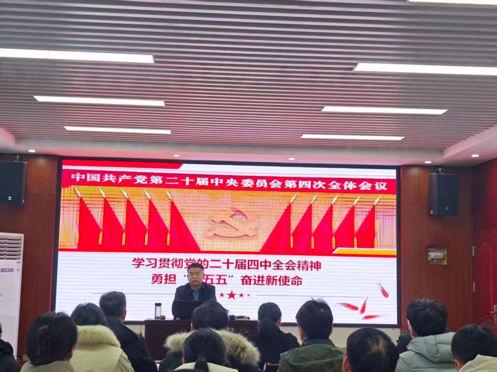 施长春紧扣党的二十届四中全会主题,从历史演进、重要内容、贯彻落实三个维度,对全会精神进行了系统解读。他详细介绍了改革开放以来历届四中全会的坚实足迹及其核心部署,深刻阐释了党的二十届四中全会作为锚定“十五五”、奠基现代化关键会议的特殊历史地位和战略意义,重点回顾了“十四五”时期发展成就,系统解读了“十五五”时期主要目标、重点任务。他强调,要紧密围绕学校发展战略与学院办学实际,将全会精神切实融入立德树人、教学科研、服务社会等具体工作,全体教职工要提高政治站位,深刻领会全会精神实质,自觉将学习成果转化为推动工作的科学思路、有效举措和实际能力。