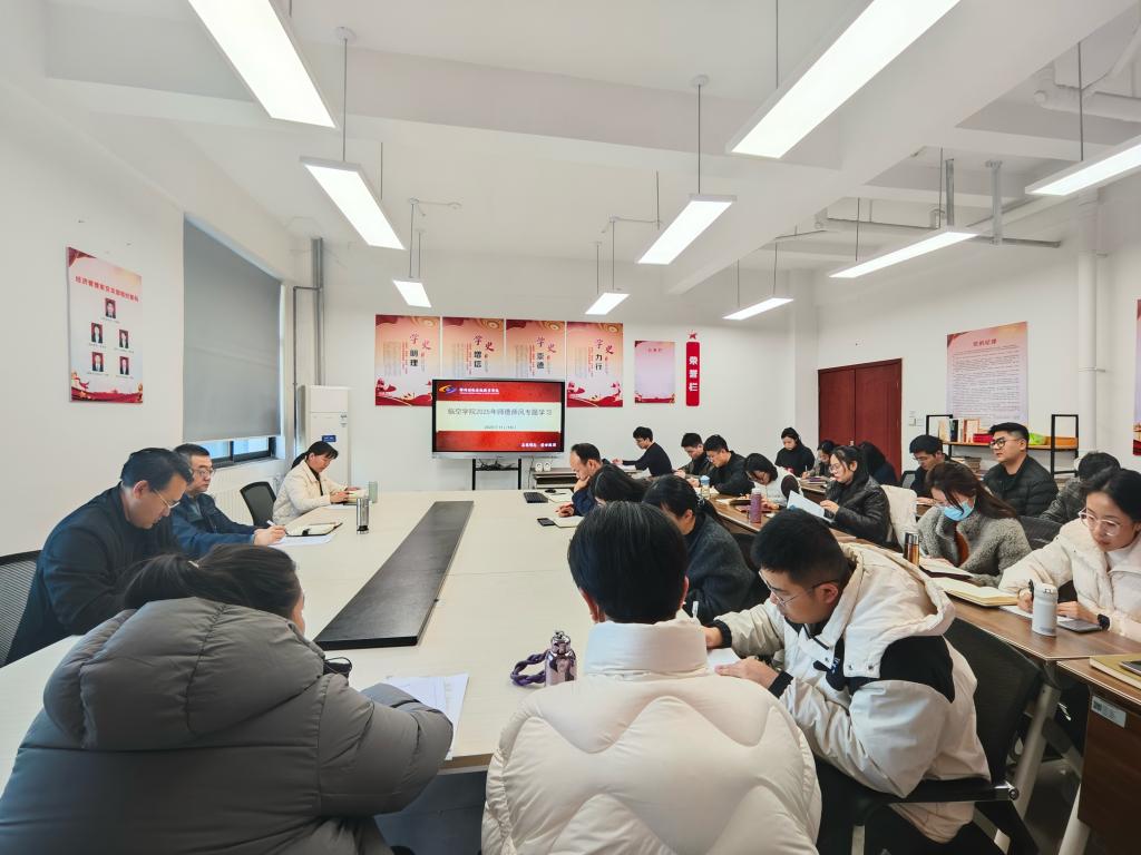 【通讯员:王旖旎】为深入贯彻习近平总书记关于教师队伍建设的重要论述,强化教师立德树人的责任担当,2025年11月18日下午,临空学院开展师德师风专题学习活动。本次学习以“弘扬教育家精神,筑牢师德根基”为核心,将习近平总书记重要讲话精神与“四有”好老师标准深度融合,为全院教师队伍建设注入精神动力。