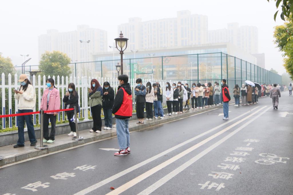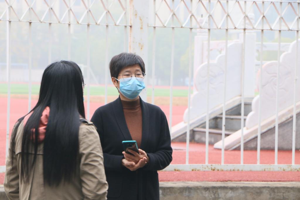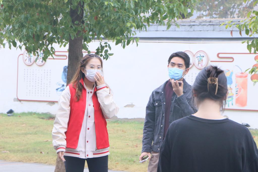 经济管理系老师督促学生排队检测