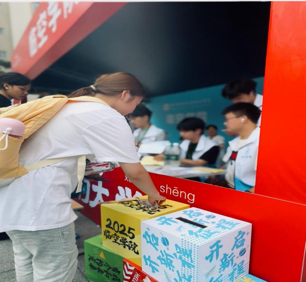 【通讯员:刘彦伸】在充满希望与憧憬的迎新季,为帮助2025级新生更好地明确目标、规划未来,临空学院在迎新报到时特别举办了一场意义非凡的“时光为筏,梦想作序”时光信箱活动。新生们纷纷拿起纸笔,将心中对未来的期许化作文字,投入精心准备的信箱中,与三年后的自己展开一场跨越时空的对话。