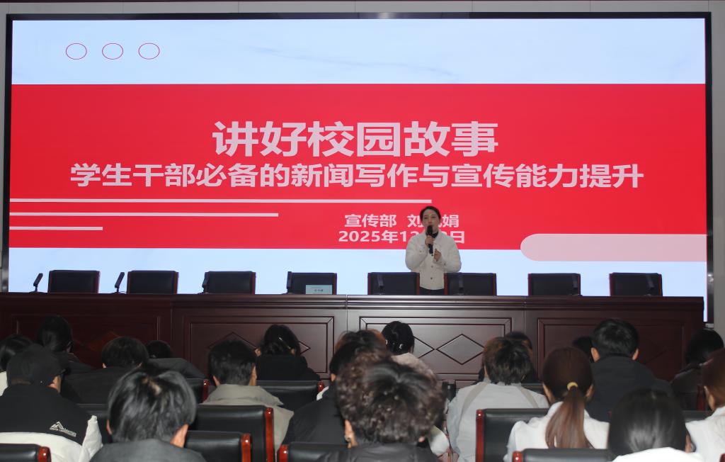 【通讯员:王少毅】为全面提升学生干部的综合素养、锤炼文字功底,12月3日下午,临空学院“青锋训练营”第四期学生干部培训课程在厚德楼报告厅顺利举行。本期培训特邀校宣传部宣传科科长刘凤娟老师担任主讲,以“讲好校园故事——学生干部必备的新闻写作与宣传能力提升”为主题,为参训的100多名学生带来了一场内容丰富、实用性强的专题辅导。