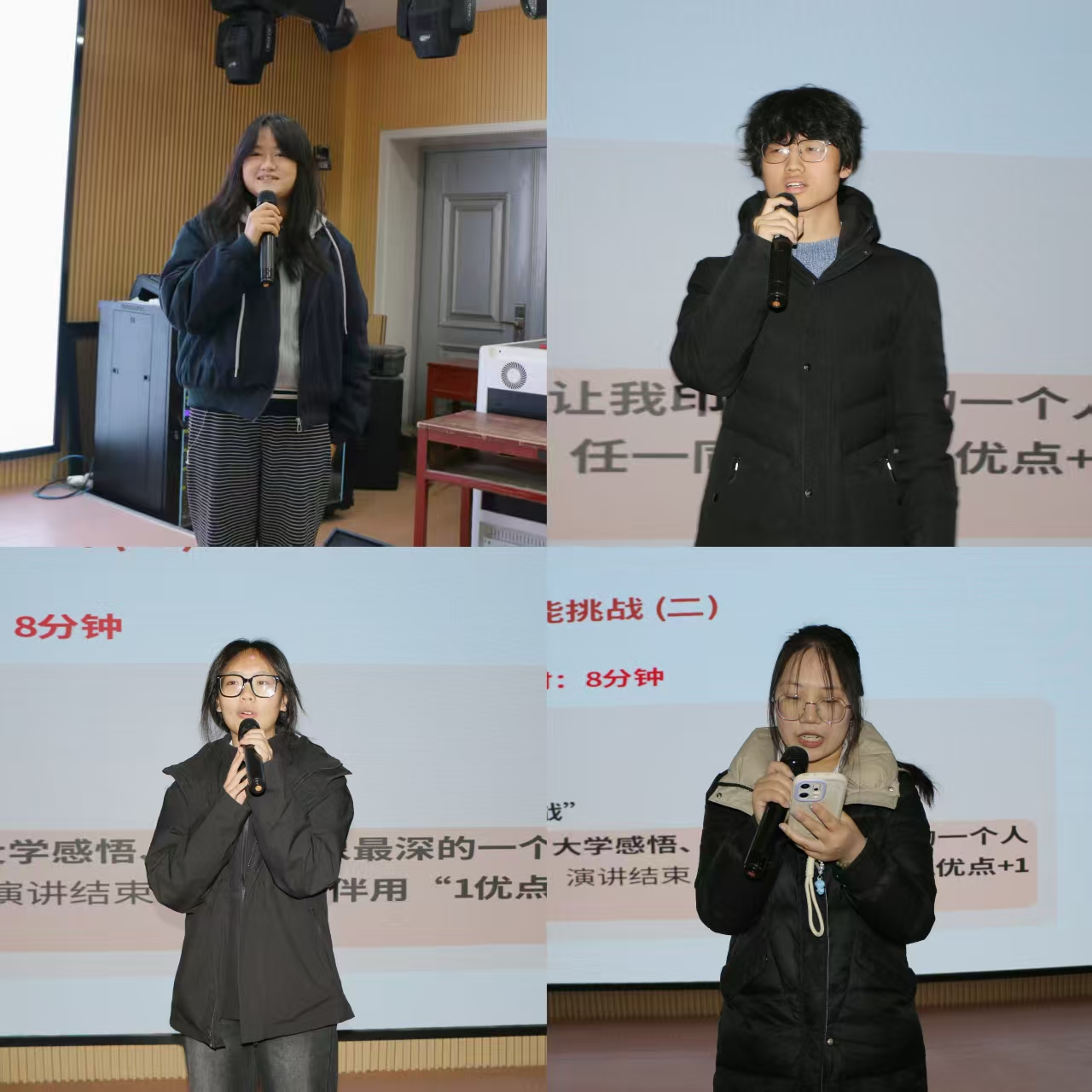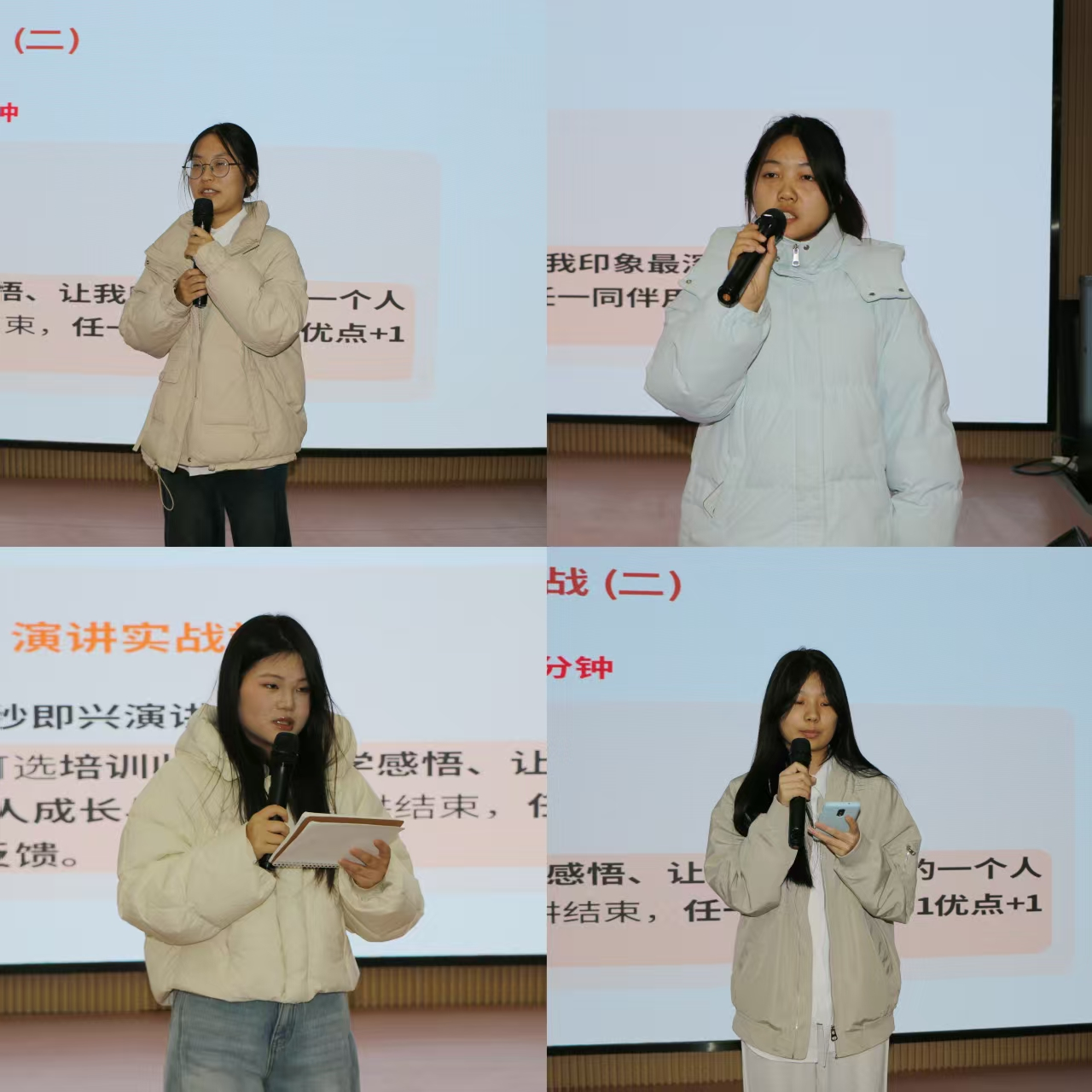 挑战二是60秒即兴演讲,学员们围绕培训收获、大学感悟、印象深刻的人或事等主题畅所欲言,演讲结束后,同伴及时给出“1个优点+1个建议”的反馈,在思维碰撞中实现共同进步。挑战三聚焦AI使用,学员们从学院微信公众号中任选一篇文章,发挥创意巧思,为其更换更具吸引力的标题,尽显创新能力。挑战四为活动策划,各团队运用“目标、亮点、流程、资源”四格表,快速构思与学院专业相关的特色活动,不仅为活动起好了吸睛的名称,还设计出创意满满的宣传文案,让一个个新颖的活动提案初具雏形。