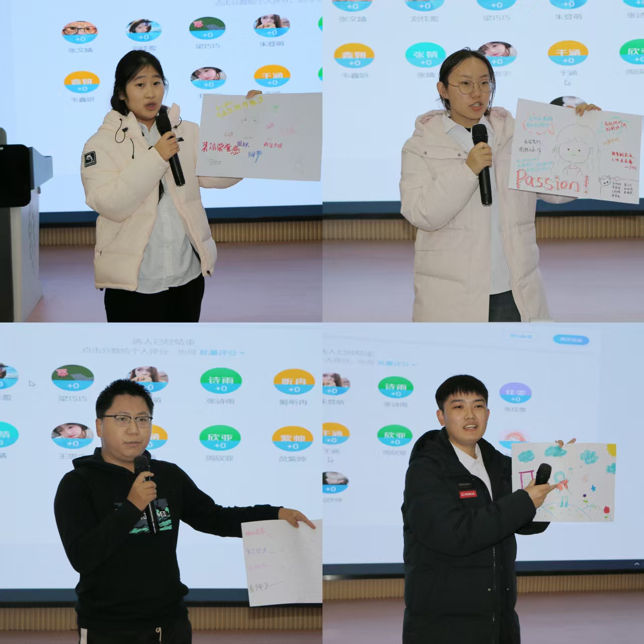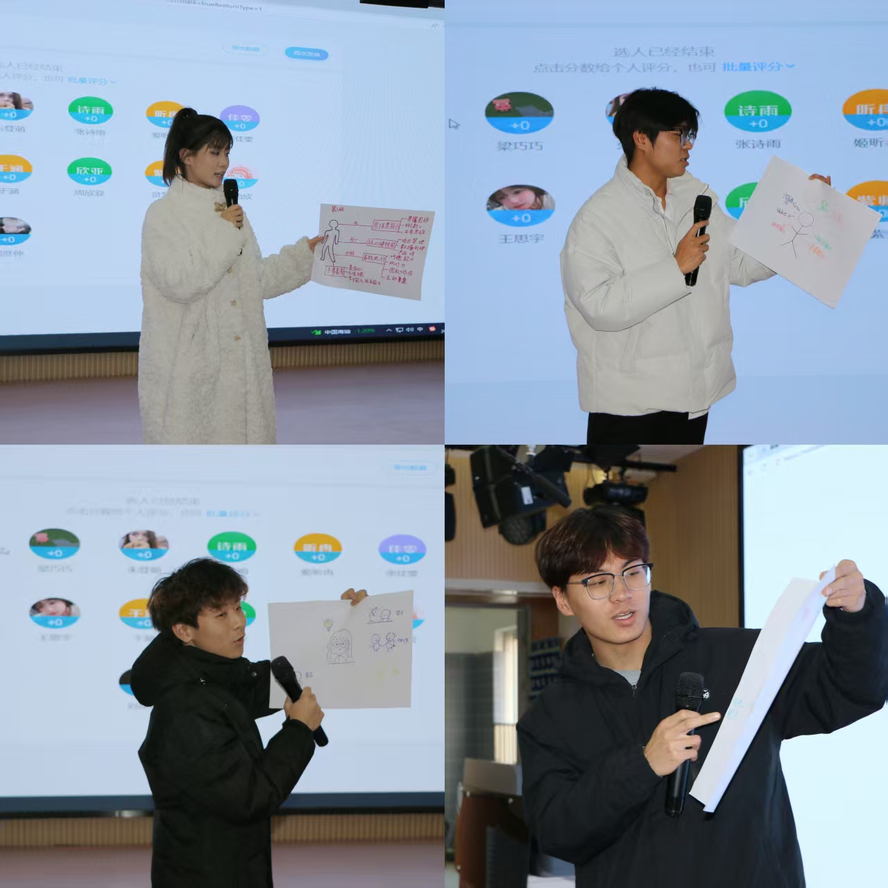 本次成果汇报紧紧围绕学生主角、成果可视、全员参与、趣味检验四大理念,设置四大技能挑战,全方位检验学生干部的培训成效。挑战一为角色认知,各团队用A3纸与彩笔,通过“人形立牌+能力图谱”的形式,将抽象的学生干部素质标签化、图像化,在合作绘制的过程中,把个人对干部职责的理解升级为群体共识,清晰勾勒出学生干部的履职画像。