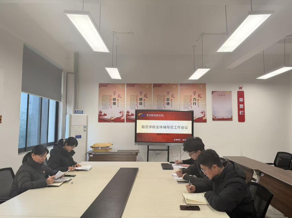 【通讯员:李至柔】为筑牢学期末安全稳定防线,强化育人使命担当,系统提升假期教育管理效能,临空学院于1月9日在明德楼311召开第六次辅导员工作会议。会议由学院党总支书记马素梅主持,学团办负责人周宁霞及全体专兼职辅导员参加。