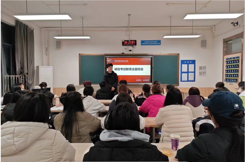 为强化教育实效,班会鼓励班级学生骨干、入党积极分子带头做出诚信应考的口头承诺,并引导同学们就自觉遵守考场纪律、维护考试公平展开深入讨论。各班级还自发形成了相互提醒、共同遵守的班级公约,将诚信要求内化为集体共识。此外,辅导员们还就科学备考方法、压力应对策略等提供了贴心指导,体现了严明纪律与人文关怀并重的育人理念。