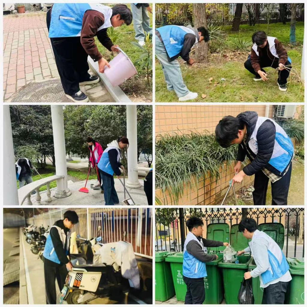 环境美化:志愿者对校园公共区域、绿化带、教学楼周边进行清扫,清除卫生死角,整理非机动车停放秩序,使校园环境更加整洁优美、井然有序。
