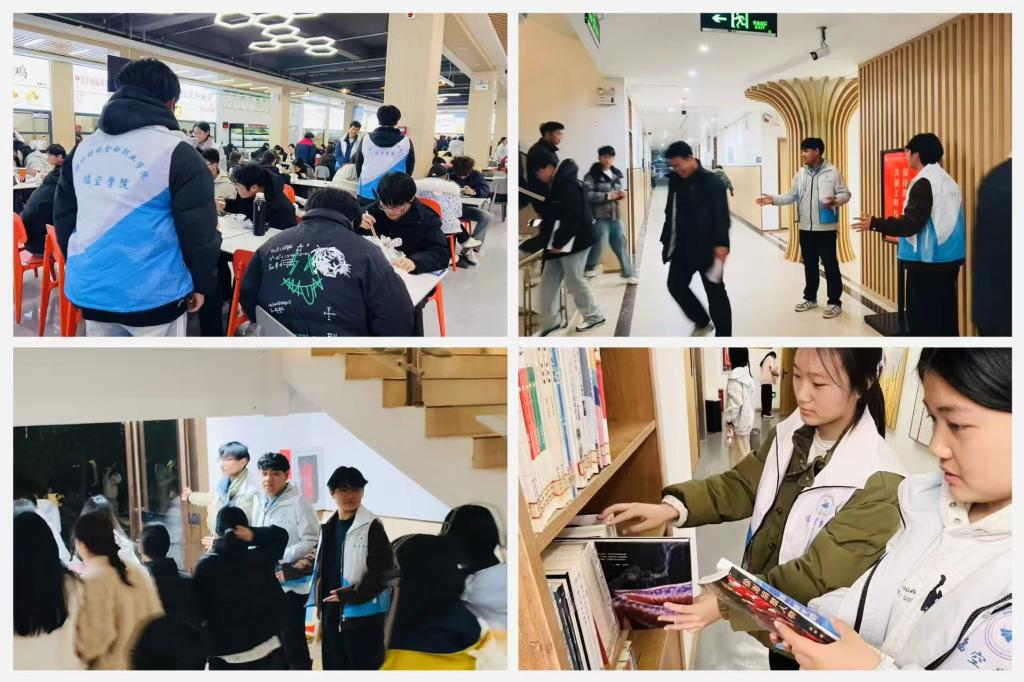 秩序维护:在食堂、图书馆、教学楼等人流密集区域,志愿者协助开展秩序引导,提醒同学们自觉排队、文明礼让,共同营造有序、文明的学习生活环境。