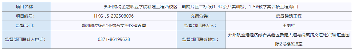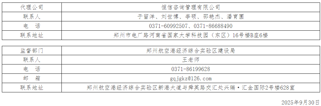 郑州航空港经济综合实验区公共资源交易中心公告链接:http://www.zzhkgggzy.cn:18082/jyxx/001001/001001005/20250930/4ee20d20-3949-4d3c-809c-23d76486f793.html?gonggaoguid=80b39226-73ad-41f7-b3ab-585f9b62374d