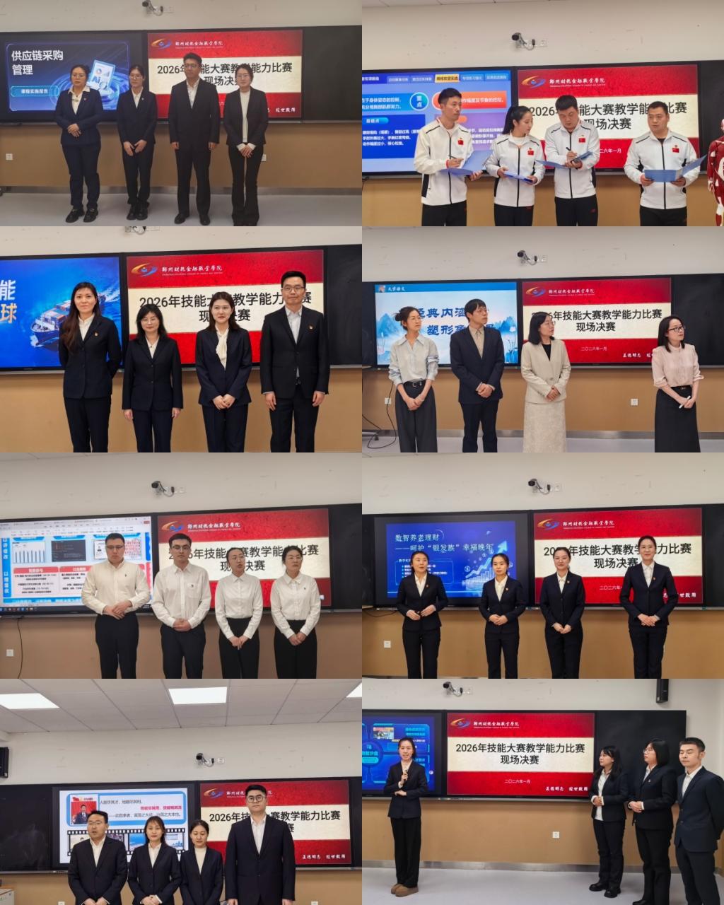【通讯员:王旭东】为深化教育教学改革,推动数字技术与课堂教学深度融合,锤炼教师专业核心能力。1月20日,我校2026年校级教师教学能力比赛现场决赛在笃行楼2305智慧教室圆满落幕。本次比赛严格对标省级赛事标准,特邀请河南交通职业技术学院王寅老师、河南农业职业学院陈星星老师、河南经贸职业学院教务处副处长刘正君组成评审团,确保比赛公平、公正、公开。