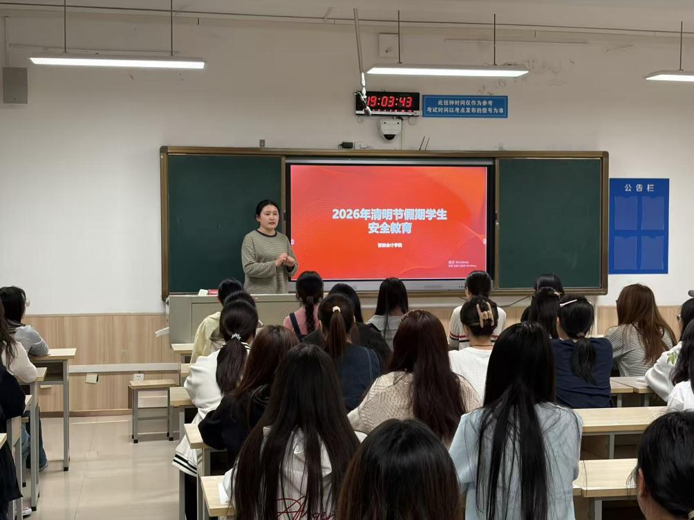 【通讯员:李雨霞】为切实做好清明节假期学生安全管理工作,筑牢学生安全防护防线,保障学生假期出行与生活安全,在清明节假期来临前,智能会计学院以“平安清明,安全同行”为主题,组织各班级召开假期安全教育主题班会。本次班会由24、25级辅导员主持,全体学生参与。