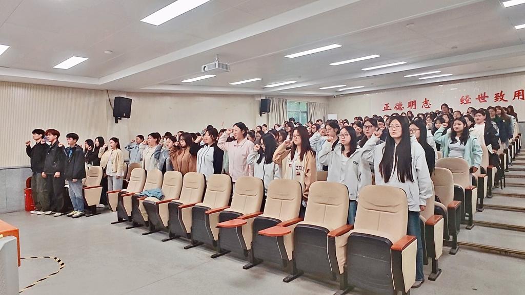 班会尾声,全体学生起立,进行庄严的反诈骗宣誓,以郑重承诺强化反诈意识,自觉抵制各类电信网络诈骗。此次主题班会内容详实、针对性强,有效提升了学生的反诈识别与自救能力,为构建平安、无诈的校园环境夯实了基础。【一审:吕文迪/二审:刘文超/三审:薛现平】