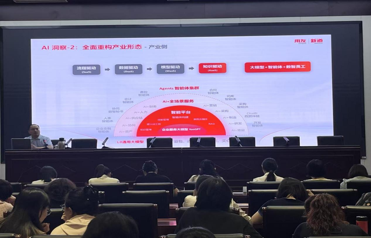 【通讯员:吴冰倩】为推动财会行业与人工智能深度融合,培育适应新时代需求的专业人才,9月16日下午,智能会计学院特邀用友集团新道科技河南分公司副总经理李鹏飞在厚德楼二楼学术报告厅作了题目为《推进“人工智能+”教育服务河南省7+28+N重点产业链》的专题讲座,智能会计学院院长董昕、副院长王金鑫及全体教师参加了此次专题讲座。讲座由教学办公室主任雷亢亢主持。