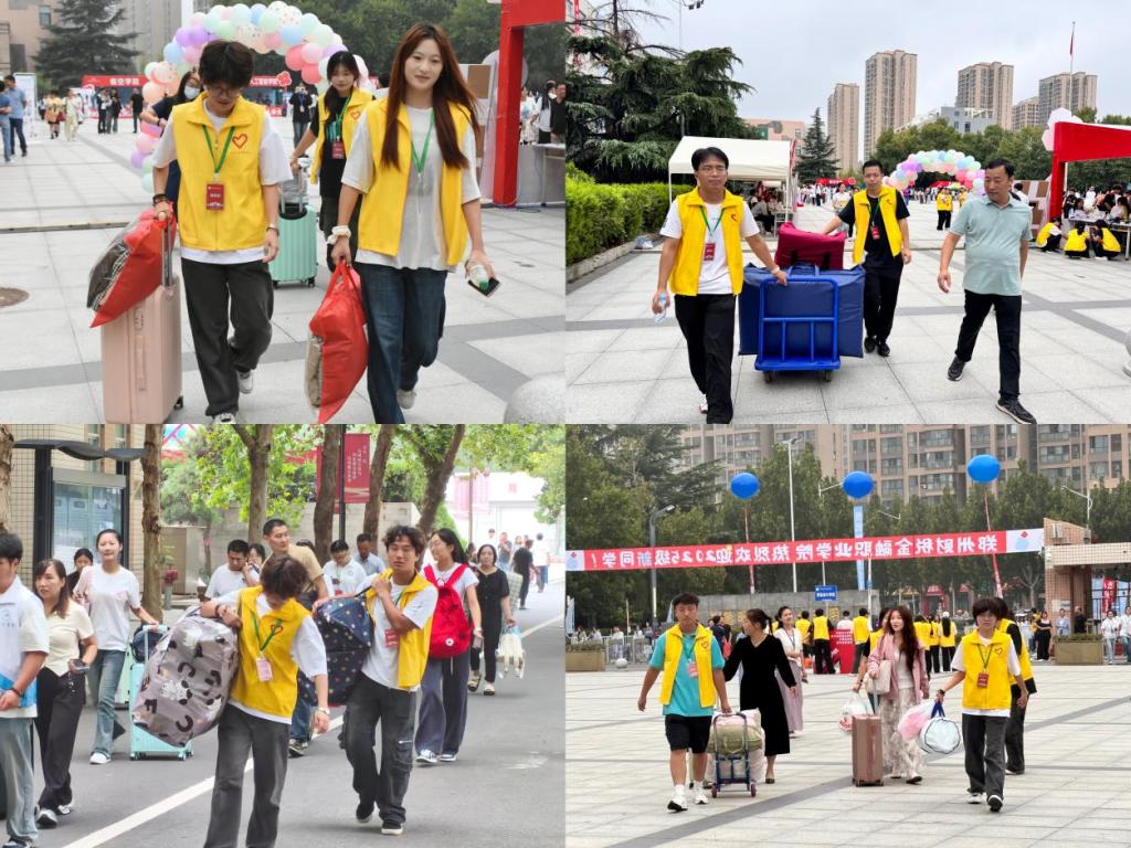 迎新当日,从清晨伊始,各项工作便在一片温馨繁忙中有序展开。在学院精心设置的迎新接待点,志愿者们身着统一服装,各司其职,有的在校门口高举指示牌,热情地引导初来乍到的新生与家长;有的在报到处耐心细致地核对信息、分发材料、解答疑问,“一站式”的快捷服务极大简化了报到流程;“行李搬运小分队”的同学们不辞辛劳,主动接过沉甸甸的行囊,穿梭于宿舍楼宇之间,用汗水和笑容传递着来自学长学姐的第一份温暖。整个迎新流程顺畅高效、环环相扣,同时也确保了新同学们能够顺利、舒心地开启他们的大学新生活。