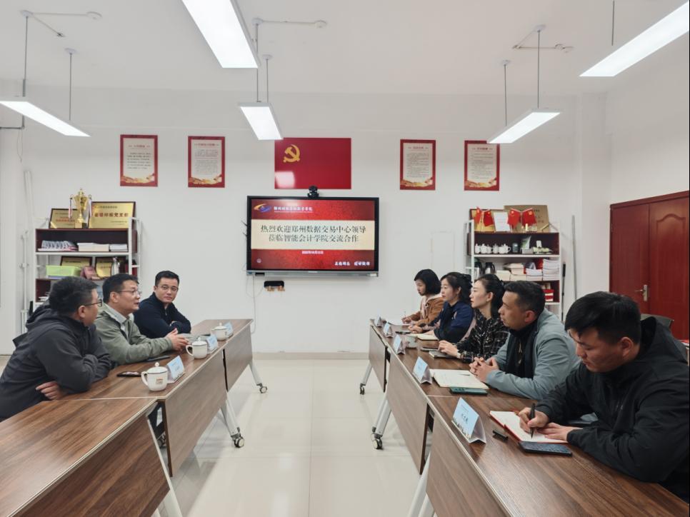 【通讯员:沈净瑄】2025年10月11日下午,郑州数据交易中心生态发展部部长王连群、生态发展部总监孙海港、哈密运营中心项目经理黄洪磊一行莅临我院,就产教协同育人、跨区域教育协作等议题开展深度产学研合作交流,智能会计学院领导班子及相关部门负责人在明德楼205会议室热情接待。