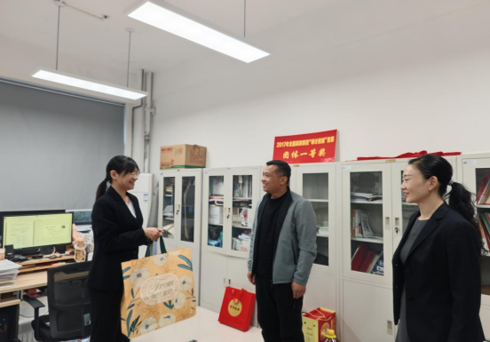 院长董昕和党总支书记薛现平为新婚职工武昊天及家属送上祝福和慰问纪念品,恭贺他们走进婚姻的神圣殿堂,希望他们在今后的生活工作中,能够持续创造幸福、传递幸福、分享幸福,建设好自己的小家庭并为学院的发展贡献青春力量。武昊天老师表示,工会的关怀让他们备受感动和鼓舞,真真切切地感受到“娘家人”的温暖。在今后的工作中,将继续在岗位上发光发热,以更加饱满的精神状态投入到教育教学之中。
