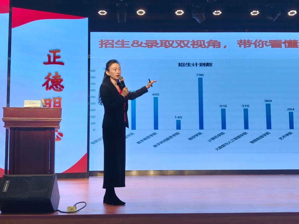 会上,董昕院长代表学院向全体新生表示热烈欢迎。她阐述了青春与奋斗的内在联系,为新生的学业发展指明方向。董院长系统介绍了学校的发展历程与办学成果,全面展示学校的综合实力,并详细说明了智能会计学院的师资队伍、课程体系、技能竞赛成果、校园品牌活动及各专业的就业前景等。勉励同学们珍惜大学时光,扎实学好专业知识,树立远大目标,以积极进取的态度实现自我成长。