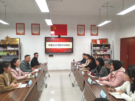 【通讯员:黄晴】10月20日下午,智能会计学院在明德楼205会议室召开秋季学期第七周中层例会,智能会计学院院长董昕、党总支书记薛现平、副院长王金鑫及全体中层参加了此次会议。会议由党政办公室主任刘俊主持。