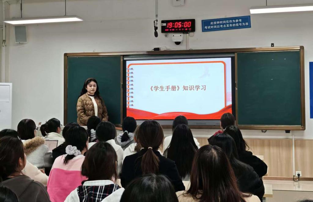 我院25级辅导员通过主题班会、专题讲解等多种形式,带领新生系统学习《学生手册》核心内容,重点解读学籍管理、奖惩办法、校园安全、学风建设等与新生息息相关的规章制度,帮助新生筑牢规则意识。会议期间,同学们认真学习,积极提问,学习氛围浓厚。