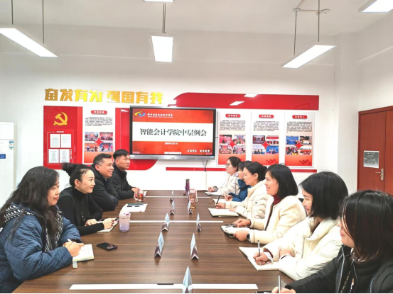 【通讯员:黄晴】12月1日下午,智能会计学院在明德楼209会议室召开秋季学期第十三周中层例会,智能会计学院院长董昕、党总支书记薛现平、副院长王金鑫、党总支副书记刘文超及全体中层参加了此次会议。会议由党政办公室主任刘俊主持。