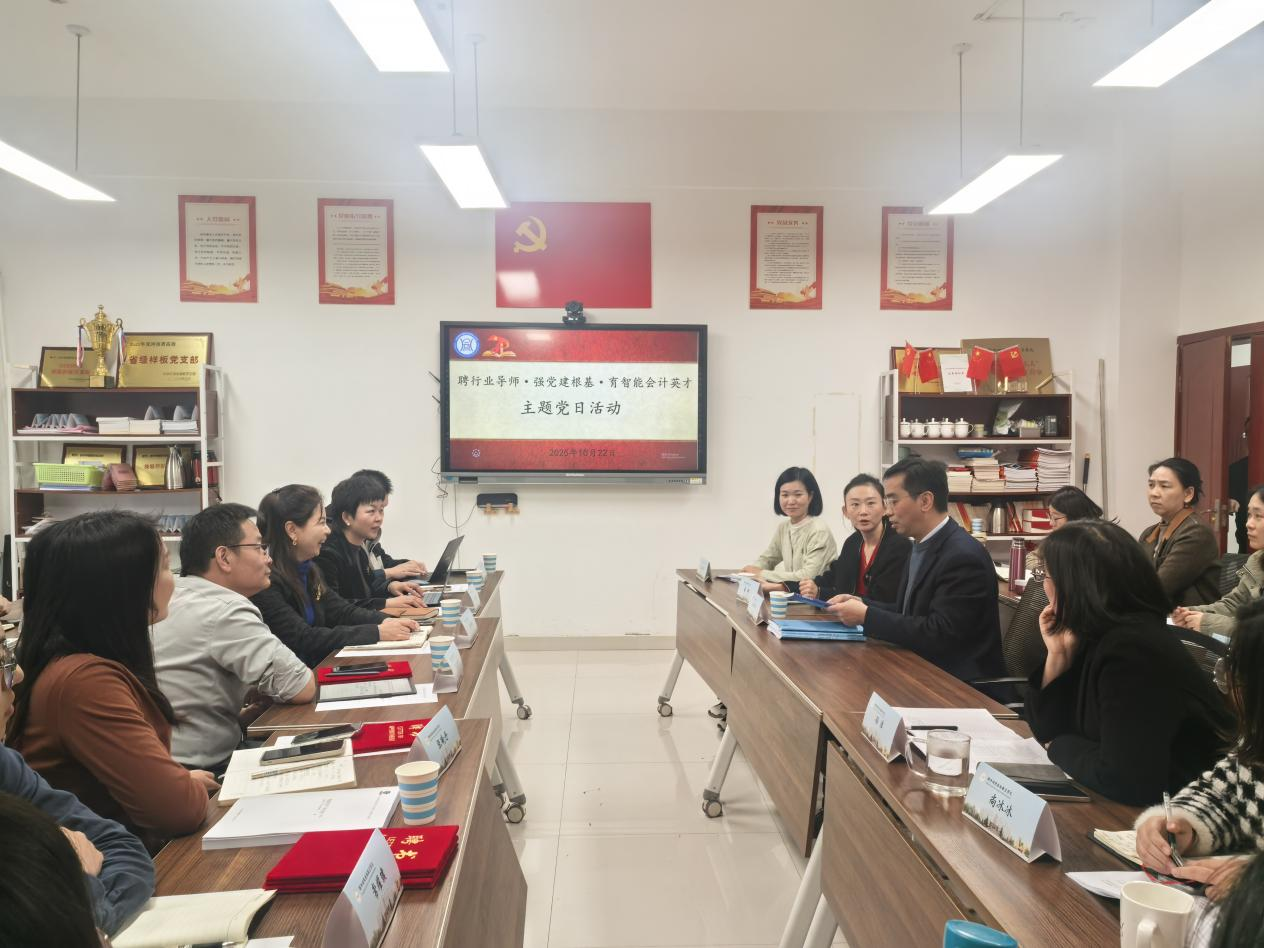 【通讯员:常青】为深化产教融合、强化党建引领育人实效,10月22日下午,会计学院教师党支部在明德楼205会议室举办“聘行业导师・强党建根基・育智能会计英才”主题党日活动。教师党支部党员骨干、郑州数据交易中心、河南众瑞数据产业有限公司相关负责人参会,活动由会计学院教师党支部书记董昕主持。