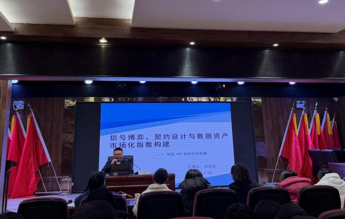 活动中,特邀请智慧金融学院党员教师郭春良博士以《信号博弈、契约设计与数据资产市场化指数构建》为题开展专题分享。郭博士结合河南省经验数据,从“研究背景-理论模型-指数构建-实证分析”四个维度,系统解析数据资产市场化进程中的核心逻辑与实践路径。分享过程中,特别融入“党建引领科研方向”的思考,引导党员教师立足国家战略需求,把握数字资产领域前沿动态,将科研选题与服务国家经济发展、行业转型升级紧密结合,让前沿科研知识学习成为党员教师强化使命担当的“红色课堂”。