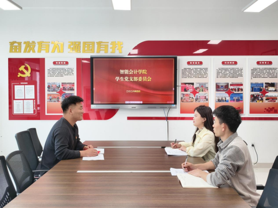 【通讯员:王琳君】为持续强化支部政治建设,筑牢党员思想根基,4月7日智能会计学院学生党支部在明德楼209会议室召开支委会会议。会议由党支部书记刘文超主持,支部委员杜国辉、王琳君参加。