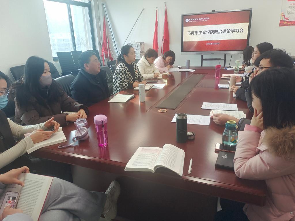 会上,副院长李靖宇带领全体教师深入学习了《中央经济工作会议在北京举行》和《中共中央政治局召开会议 分析研究二〇二六年经济工作审议<中国共产党领导全面依法治国工作条例>》等重要会议精神。她系统解读了中央关于当前经济形势的判断和明年经济工作的总体要求,阐述了坚持和加强党对经济工作全面领导的重大意义。