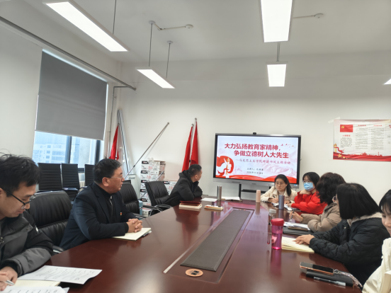 【通讯员:王胜南】为深入学习领会和贯彻落实教育家精神的时代内涵与实践要求,进一步强化教师队伍思想政治建设与师德师风涵养。2025年11月18日,马克思主义学院组织召开专题集中学习教育会议,本次学习教育活动由马克思主义学院院长孔继海主讲,紧密围绕教育家精神的核心要义、践行路径、文化传承及初心使命坚守等维度展开深入研讨与交流,学院全体教职工参加学习。