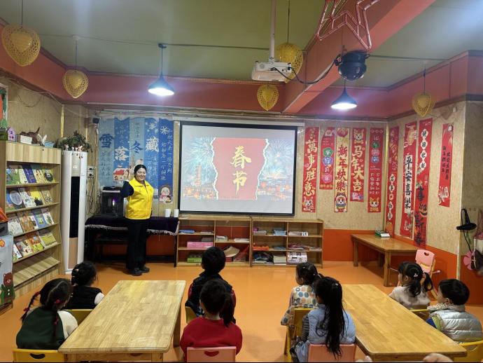 志愿者们在活动现场化身“文化讲解员”,通过生动的故事、直观的图片,向小朋友们详细讲解了春节贴春联、守岁、拜年、挂灯笼等传统习俗的起源与寓意,引导孩子们深入了解春节背后的文化内涵,在轻松的氛围中筑牢文化认同。