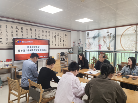 【通讯员:郭江涛】为持续强化学生教育管理服务效能,切实维护校园安全稳定大局,近日,数字商贸学院在明德楼茶艺室召开辅导员工作例会暨安全工作会议。学院党总支书记刘晋、学团办主任程首一及全体专兼职辅导员参加本次会议。