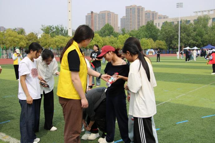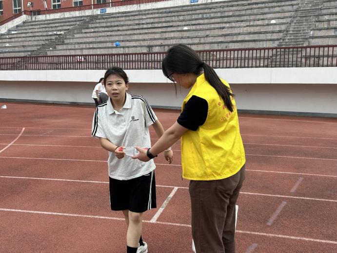 运动会正式开赛期间,志愿者们始终以饱满的热情坚守岗位,提前到岗、延后离岗,全程全力保障赛事有序推进。大家各司其职、各负其责,一部分志愿者驻守服务站点,细心做好饮用水、应急物资补给,耐心为师生提供赛事问询、路线指引服务;一部分志愿者扎根赛道沿线,认真协助工作人员维持现场秩序,全力守护运动员参赛安全;还有志愿者穿梭在看台与赛场周边,积极引导师生文明观赛,及时清理场地垃圾,维护赛场整洁环境。为期两天的赛事进程中,小蜜蜂志愿者们的身影无处不在:烈日炎炎下,他们第一时间为完赛运动员递上解渴的饮用水;有选手出现体力不支状况时,他们迅速上前搀扶护送、贴心照料。一件件平凡细碎的小事,一项项细致周到的服务,共同织就了覆盖赛场全程的坚实保障网。
