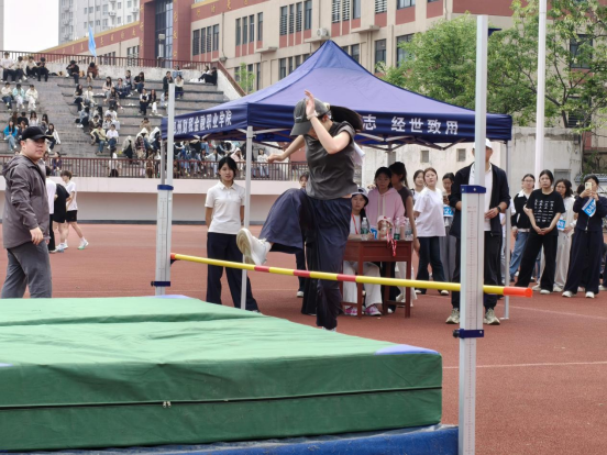 田赛赛场同样高潮迭起,上演着一场场突破自我、挑战极限的精彩角逐。跳高赛场上,学院健儿助跑、起跳、腾空、过杆,一系列动作行云流水,身体在空中划出优美弧线,每一次成功越杆,都是对自我极限的勇敢突破。