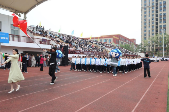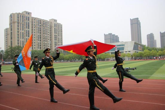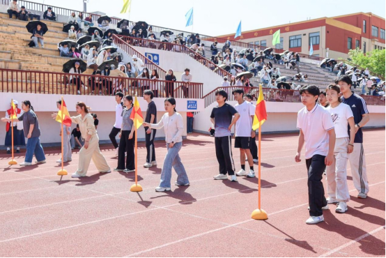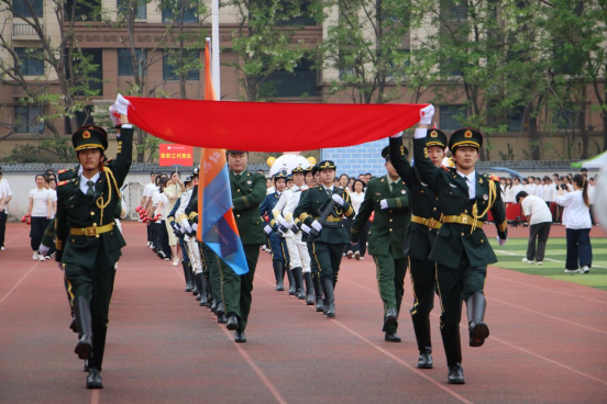 开幕式上,激昂雄壮的《运动员进行曲》响彻全场,各方阵队伍精神抖擞,依次通过主席台接受检阅。国旗护卫队英姿飒爽、步履铿锵,鲜艳的五星红旗迎风飘扬;校旗队伍紧随其后,尽显学校办学特色与文化底蕴。