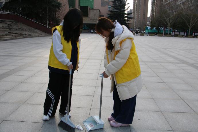 活动首先来到人流量大、作为校园重要形象窗口的教学楼区域。这里是师生日常上课、自习的必经之地,环境整洁与否直接关系到学习氛围与校园形象。志愿者们两人一组、三人一队,不放过任何一处卫生死角:有的手持扫帚,仔细清扫路面落叶、纸屑与尘土;有的拿起垃圾钳,认真夹取花坛边缘、墙角缝隙中的烟头、塑料袋等细小垃圾。教学楼台阶、走廊及出入口,处处可见志愿者们忙碌的身影,扫帚划过地面的声响,汇成一曲朴实动人的劳动乐章。经过一番辛勤清扫,教学楼前广场与通道焕然一新,干净整洁,在夕阳映照下更显明亮有序。