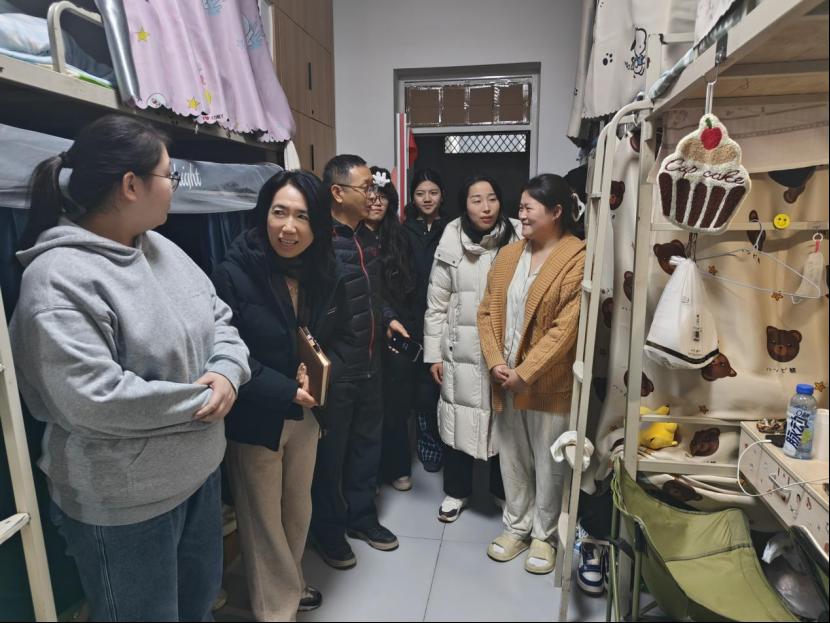 【通讯员:张萨】为进一步深化教育教学改革,精准掌握学生学习生活与思想动态,筑牢校园安全防线,2025年12月22日,数字休闲服务学院院长石玫珑和党总支书记刘钦走进课堂与学生宿舍,开展“进课堂、进宿舍”走访调研活动。