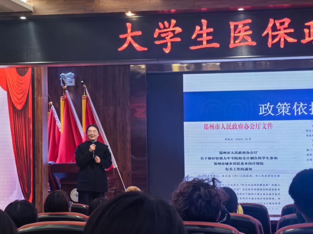 【通讯员:周高洁】为帮助2025级新生全面了解大学生医保政策,切实保障学生就医权益,11月11日下午,学生处联合郑州市管城区医保中心在我校思政报告厅举办“大学生医保政策宣讲会”。全校25级班长及学生干部代表100余人参会。