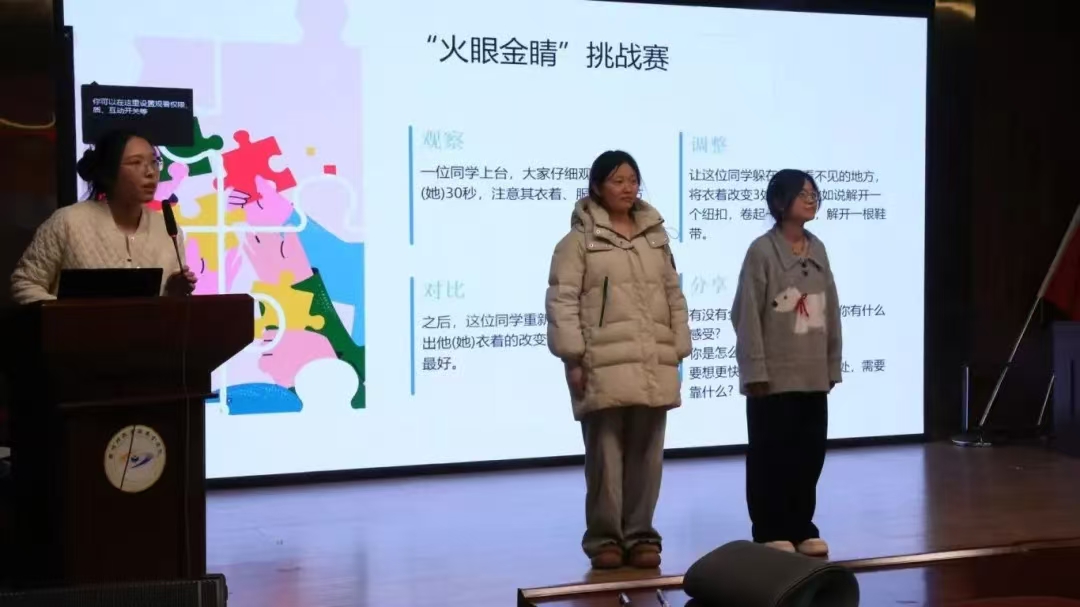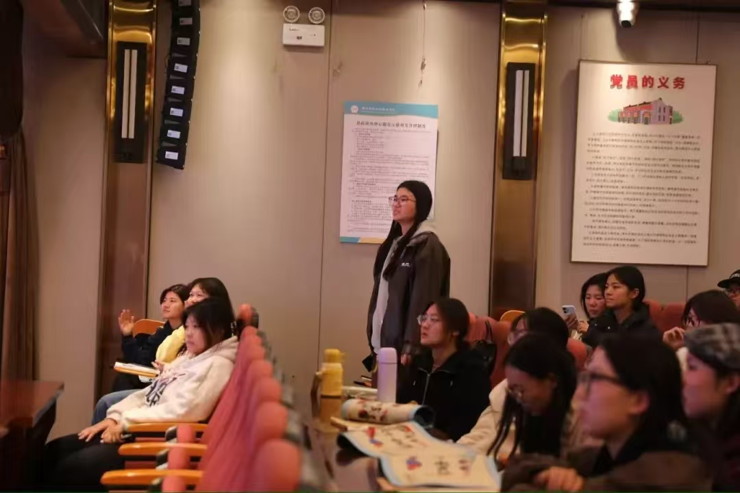 活动伊始,刘老师以“火眼金睛”活动导入,迅速调动起了现场的气氛,同学们积极参与,纷纷踊跃发言。接着,刘老师围绕“心理委员角色定位”“基本素养于职责”“大学生常见心理问题暨健康标准”“常见心理问题处理”四个方面进行了系统且深入的讲解。刘老师强调心理委员作为班级心理健康工作组织者和师生桥梁,需及时发现反馈同学心理状况,应具备沟通、观察能力与责任心,主动营造健康氛围,识别常见心理问题,掌握倾听等技巧及处理流程,发现问题及时上报,不得擅自处理严重情况。