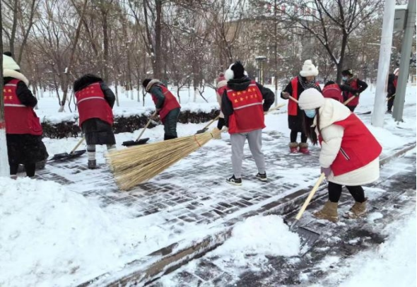在应对冬季寒潮天气过程中,学生们还主动参与到社区的扫雪除冰行动中。他们拿起铁锹、扫帚,与社区工作人员和志愿者一道,清理主干道、人行道及公共活动区域的积雪,及时消除安全隐患,保障居民安全出行。虽然天气寒冷,但同学们干劲十足,忙碌的身影成为冬日里一道温暖的风景线,以实际行动维护了社区的环境卫生,彰显了青年学子服务家乡、奉献基层的精神风貌。