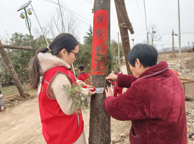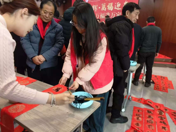 在巩义图书馆,学子服务于“义写春联送祝福,翰墨飘香迎新春”主题活动一线,热情引导市民有序参与,在墨香阵阵中传递新春温暖,弘扬书法艺术。在广大乡村基层,实践更显深度。同学们不仅帮忙张贴春联、福字,营造浓厚年味,更深度融入如临西村“绑秋千、系柏枝”等特色乡土祈福习俗。还积极协助村干部组织秧歌、扇子舞、打腰鼓等传统文艺表演,在丰富村民精神文化生活的同时,亲身守护和激活了鲜活的乡村文化记忆。