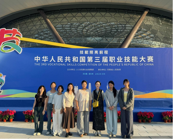 【通讯员:荆娅】2025年9月19日,中华人民共和国第三届职业技能大赛在郑州航空港区中原国际会展中心开幕。我校艺术学院服装与服饰设计专业3名教师与6名学生代表赴现场观摩学习,在国家级竞技舞台上汲取前沿经验,全面感知新时代技能人才培养趋势,探寻专业教学改革新方向。