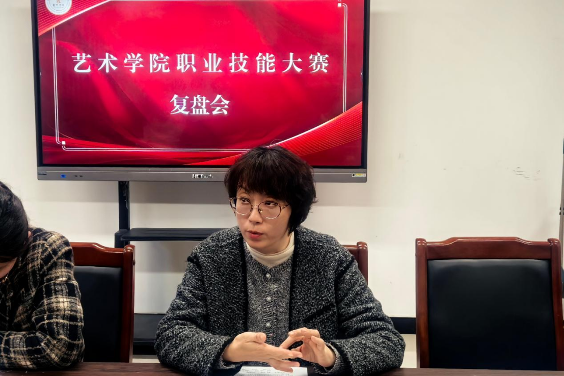 会议最后,陈曦副院长进行了总结发言。她首先对各位老师和同学的辛勤付出表达了衷心的感谢,并充分肯定了大家在比赛中取得的成绩。她指出,通过这次复盘会,艺术学院师生共同看到了自身的优势与不足,明确了未来的努力方向。接下来,学院将把技能大赛的标准和要求全面融入日常教学,坚持‘以赛促教、以赛促学’的理念,持续提升教学质量和技能训练水平。她相信,在全体师生的共同努力下,艺术学院定能在未来的技能竞赛中斩获更加优异的成绩。