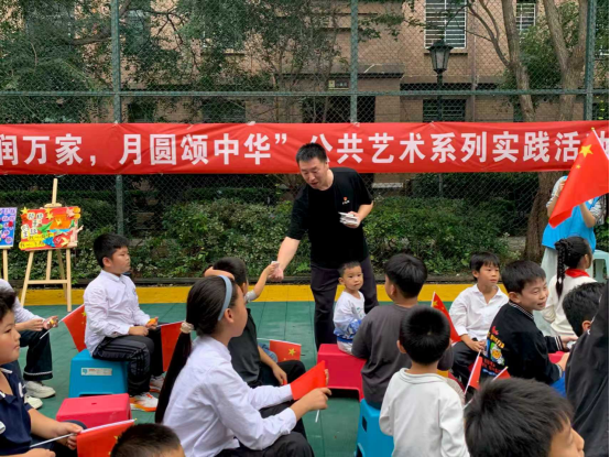 【通讯员:张顺旺】为庆祝中华人民共和国成立76周年暨中秋佳节,深入推动党建与社区服务深度融合,2025年9月29日,郑州财税金融职业学院艺术学院党支部联合公共艺术教研室,走进郑州市管城区橡树玫瑰城社区,成功举办了“党群艺家亲,月圆颂中华”主题党建活动。活动吸引了社区内众多幼儿园及中小学生、家长和居民的热情参与。艺术学院党支部组织教师党员、学生预备党员、入党积极分子及志愿者,充分发挥艺术专业优势,设置了“月儿圆,月饼甜”中秋泥塑体验、“我心飞翔,我心向党”创意折纸、“红歌润童心”爱国歌曲合唱等丰富多彩的互动环节。孩子们在志愿者的引导下,亲手制作陶泥月饼、折叠纸飞机与中国心,共同唱响《歌唱祖国》等经典歌曲,现场气氛温馨热烈,洋溢着浓厚的节日氛围与爱国情怀。