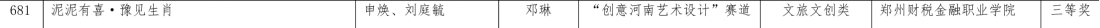 与此同时,在河南省教育厅主办的全省高等学校第五届“创意河南”艺术设计大赛中,卢琦、邓琳两位老师指导的学生作品凭借鲜明的创意理念、扎实的设计功底成功获得二等奖和三等奖,充分展现了艺院学子的创新思维与艺术实践能力。