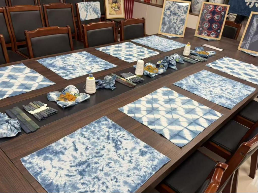 在体验环节,教师们化身“学员”,在学生“小老师”的悉心指导下,学习缝扎、捆扎等传统技法,并尝试将自己的教育理想、对党的深厚情感融入创作构思。一针一线,捆扎的是对技艺的琢磨;一染一晒,呈现的是心中的图景。现场氛围热烈而专注,师生角色互换,形成了教学相长的生动画面。