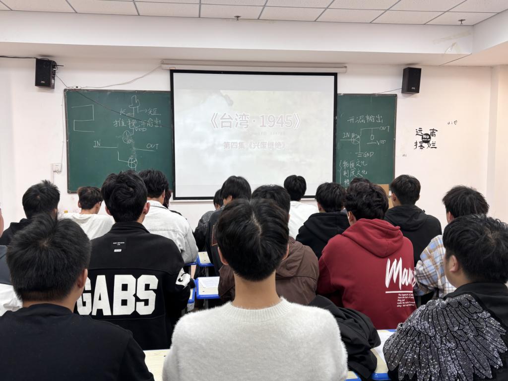 在辅导员老师的精心组织下,各班集中观看了历史纪录片《台湾·1945》。该片依托详实的史料与珍贵的影像,生动展现了1943年至1946年底台湾光复前后“筹备--接收--重建”三大阶段的重要史实和代表人物故事,从政治与军事的接管,经济与社会的重建,文化与教育的正本清源等方面深入探寻台湾回归祖国的艰辛历程,再现波澜壮阔的历史场景。同学们凝神观看,沉浸于那段波澜壮阔的历史场景,对台湾与大陆不可分割的历史渊源有了更加直观和深刻的理解。