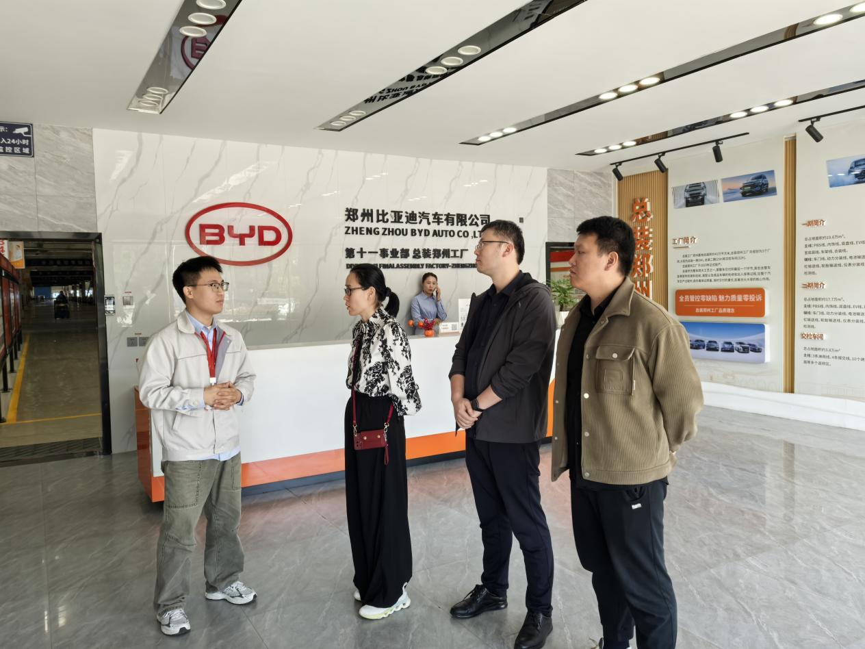 进一步加强校企合作,促进人才与产业的精准对接,推进我省‘7+28+N’产业链群建设,2025年9月24日,郑州财税金融职业学院智能制造学院院长陈思、副院长翟岩带队赴郑州比亚迪汽车有限公司开展校企合作调研。