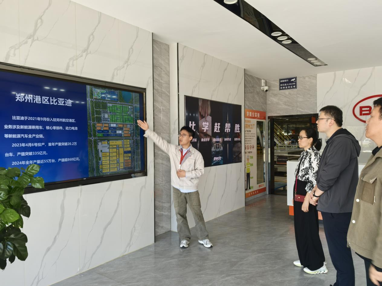 陈思一行首先参观了郑州比亚迪工厂,详细了解了郑州比亚迪的建设过程、产业战略布局、产品及企业荣誉等。